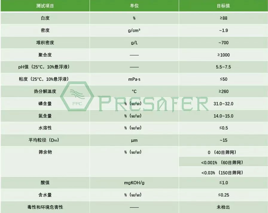 (3)物性参数:在防火涂料应用领域,典型的高聚合度聚磷酸铵如清远普塞呋的产品EPFR-APP224产品物性参数如下: