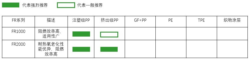 低卤环保阻燃剂NitrophorTM FR系列是通过氮、磷、溴协效作用达到UL 94 V-2阻燃级别。具有极高的阻燃效率,发烟量小,不含也无需添加Sb203作为协效剂,符合 IEC 61249-2-21 的无卤要求。其中,FR1000 属于传统联枯体系,拥有阻燃效率高,分散性能好的特点,推荐应用于电子电器产品。FR2000 及 FR3000 属于聚联枯体系,具有耐热氧老化性能优异,抗析出性能好的特点,推荐应用于电子电器、新能源汽车、挤出板材及卫浴制件等产品领域。